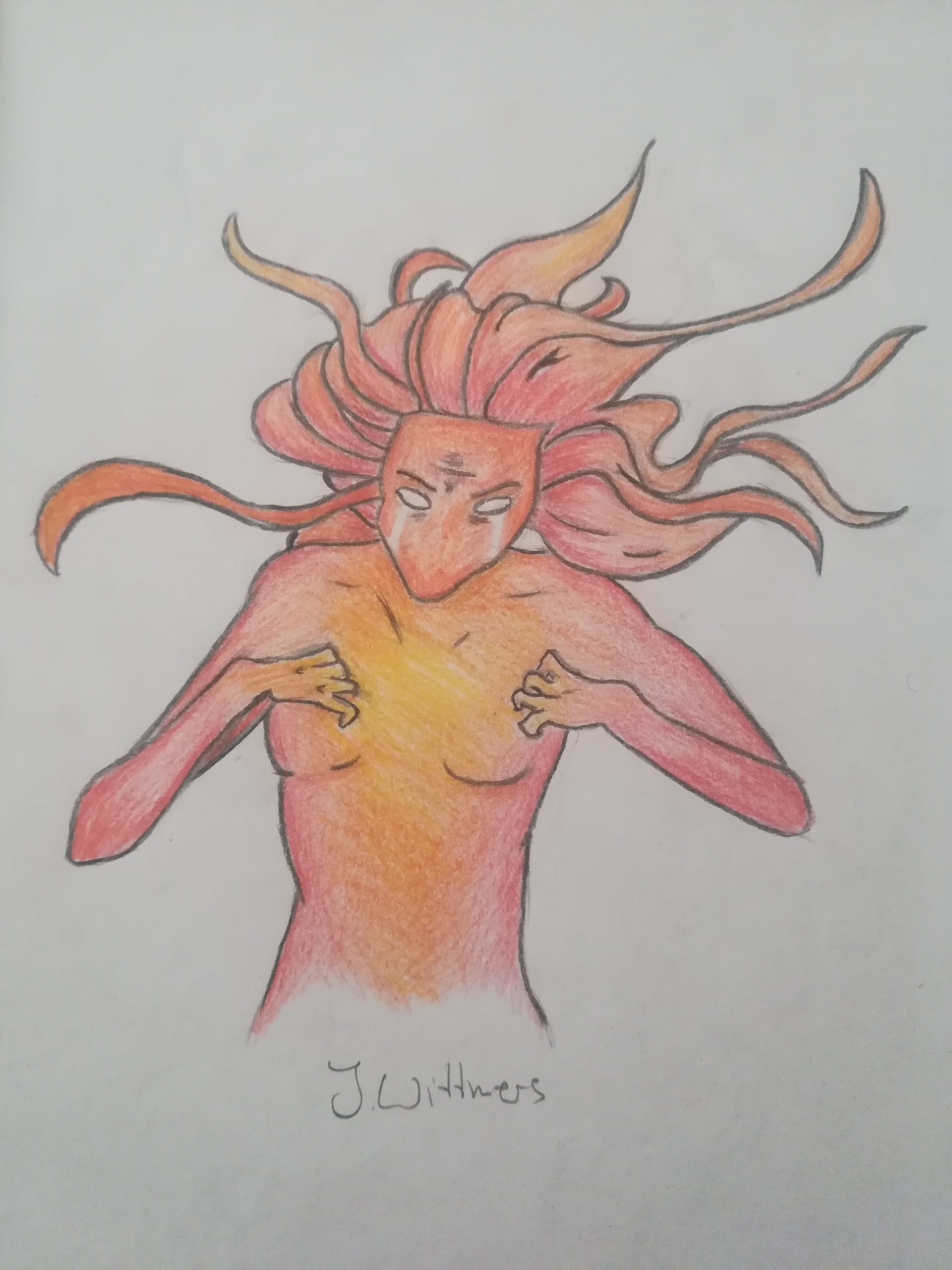 I am always trying to improve my drawings and artwork. Drawing anatomy and faces of humans tend to be very difficult for me, but I like this particular drawing, because I put a lot of effort into studying proportion, spacing and colouring. 2017